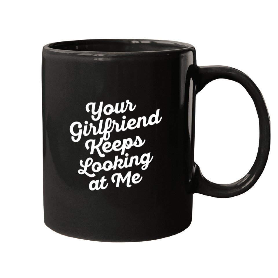 Shop for attractive Your Girlfriend Keeps Looking At Me, funny quote Mugs or see more Mugs products on https://printblur.com right now!