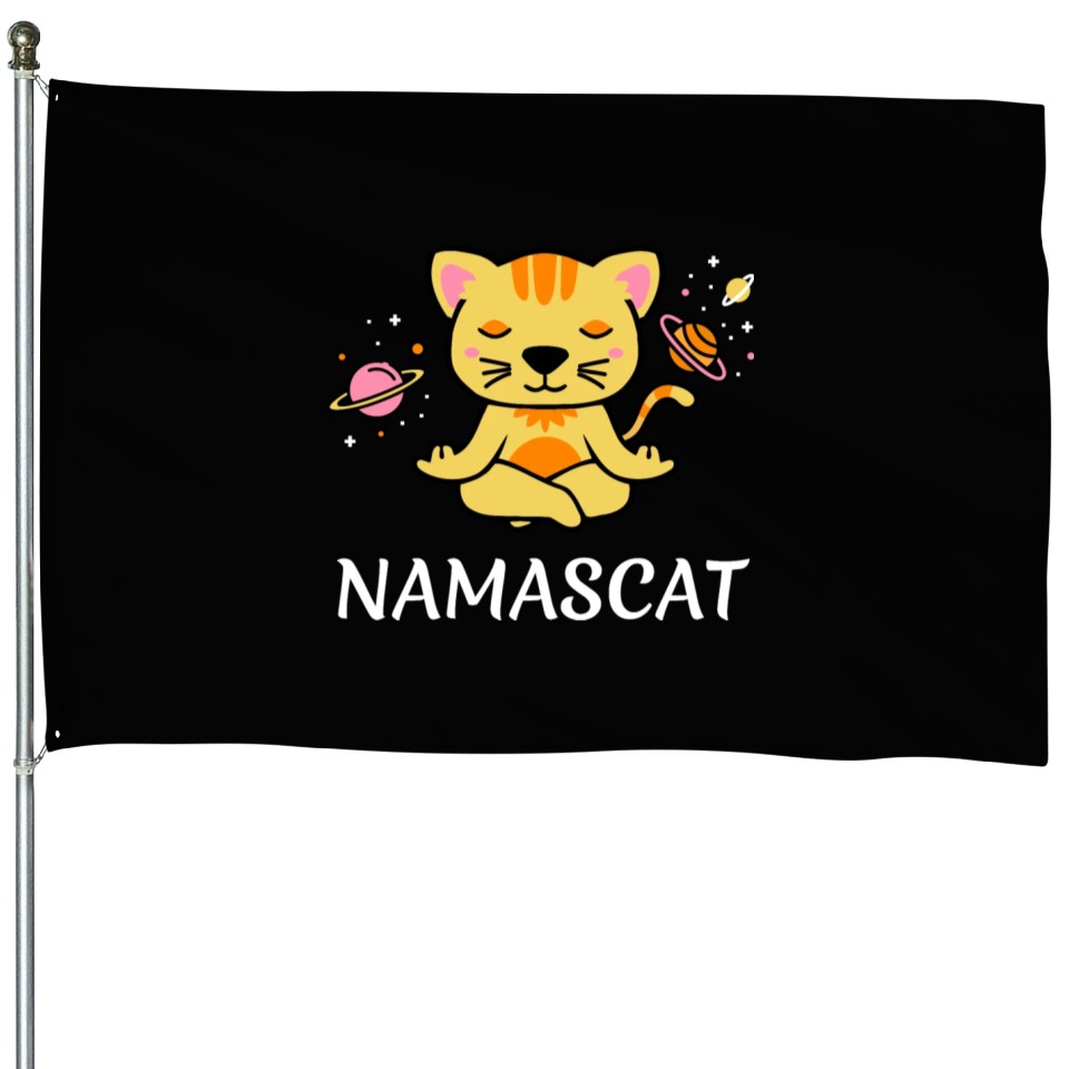Buy eye-catching zen yoga cat space meditation sport training House Flags or see more House Flags products at Printblur shop now to explore many surprises from our shop!