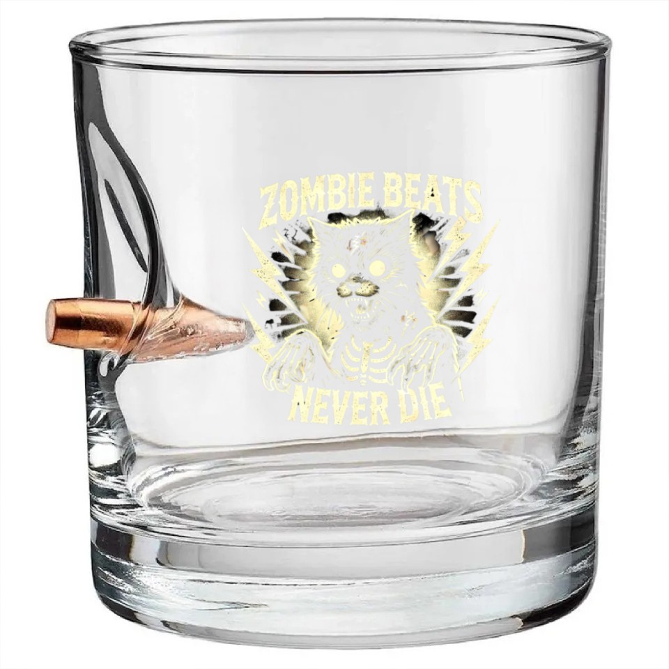 Buy stunning Zombie Cat Halloween Skeleton Skull Horror Fun Art Bullet Whiskey Glasses or see more Bullet Whiskey Glasses products at Printblur right now to receive many amazing discounts!